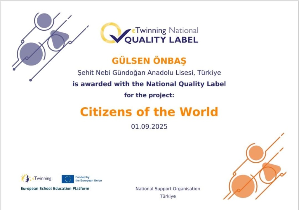 2024-2025 eğitim öğretim yılında okulumuz öğretmen ve öğrencilerinin yürüttüğü iki uluslararası eTwinning projesi, Ulusal Kalite Etiketi ile ödüllendirildi.